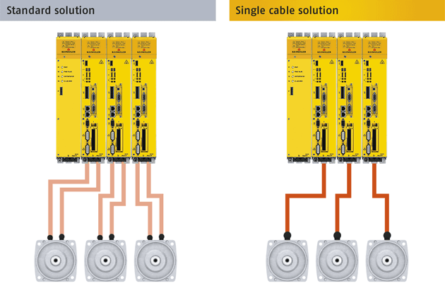 Công nghệ cáp đơn, mà động cơ Baumüller được trang bị, không chỉ giúp người dùng tiết kiệm cáp động cơ bắt buộc, mà còn cả phản hồi thường được yêu cầu hoặc cáp lai đắt tiền, không linh hoạt.