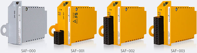 Chỉ cần cắm các mô-đun SAF vào, người dùng có thể phản ứng nhanh chóng và linh hoạt với các yêu cầu mới. Tất cả các mô-đun đều được trang bị một bộ nhớ tham số tích hợp, chứa tất cả các thông số an toàn và không an toàn được thiết lập trên bộ điều khiển biến tần của b maXX. Các chức năng an toàn được chọn thông qua I / Os an toàn hoặc EtherCAT FSoE trên mô-đun an toàn.