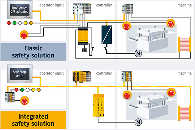 Ngoài cách tiếp cận định tính đối với an toàn theo yêu cầu của tiêu chuẩn EN 954-1, EN 13849-1 còn yêu cầu tính toán định lượng các hàm an toàn. Trong nhiều cài đặt, điều này dẫn đến việc sử dụng bộ điều khiển an toàn là bắt buộc. Là một thành viên của Tổ chức An toàn PLCopen, Baumüller đã áp dụng các yêu cầu an toàn mới trong ngành tự động hóa trên tàu và cung cấp các giải pháp bảo mật tuân thủ theo An toàn PLCopen có thể được tích hợp trong toàn bộ hệ thống tự động hóa của máy.